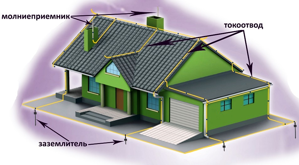 После попадания в молниеприемник, электрический разряд идет по токоотводам, закрепленным на кровле и фасаде дома. Цель данных элементов молниезащиты — «сопроводить» молнию к системе модульно-штыревого заземления. Эта система состоит из проводников и специальных стержней, достаточно глубоко закопанных в грунт. Именно эти штыри, сделанные из металла с высокой электропроводимостью, уводят разряд молнии глубоко в землю, где он успешно рассеивается.